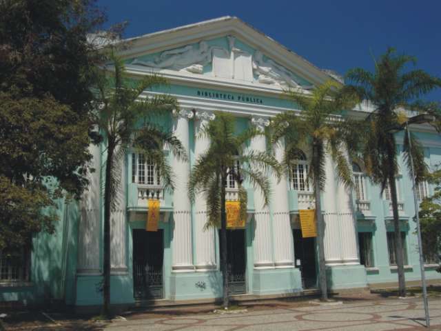 Na gestão do prefeito Feliciano Pires de Abreu Sodré, de 1911 a 1914, surgiu a ideia de construir, no centro de Niterói, uma praça que reunisse as principais sedes do Governo do Estado, em prédios modernos. Foram assim construídos a Assembleia Legislativa, atual Câmara Municipal de Niterói, o Palácioda Justiça, onde hoje funciona o Fórum de Niterói, e a Biblioteca Pública. No entorno imediato desses prédios, o Liceu e a sede da Polícia Estadual completam o conjunto cívico. No centro da praça ergue-se o Monumento à República. Os prédios públicos foram implantados em torno da antiga praça Pedro II, cujo nome foi mudado para praça da República em 1927. O tombamento visa preservar o caráter das edificações, bem como as significações culturais da praça, construída no centro da antigacapital do Estado, de forma a conservar não só a arquitetura como a escala, a expressão e o ambiente urbano do conjunto cívico. Trata-se de raríssimo caso em que o ecletismo belas-artes – no caso, a combinação imaginosa de traços de diferentes arquiteturas históricas– ultrapassa os temas individuais de cada prédio, para articular-se na linguagemem que dialogam todos entre si. É assim que, por exemplo, as próprias cores originais das alvenarias acentuavam a homenagem de cada construção à sua finalidade ideal de uso: Justiça, República, Literatura, etc. Sabe-se que o ocre da Itália alude, no Fórum, ao Direito Romano, e o azul Nattier da Biblioteca, àc ultura francesa, assim como o colorido figurado dos tijolos aparentes entre cunhais na sede da Polícia remeteria às típicas cavalariças inglesas da época. Edifício de arquitetura eclético com inspiração neoclássica, é projeto do arquiteto italiano Pietro Campofiorito, então funcionário do Governo do Estado do Rio de Janeiro. O projeto foi assinado por Lother Kastrup da Secretaria estadual de Obras por não ser Campofiorito diplomado no Brasil. A cor azul da alvenaria acentua a homenagem acadêmica à cultura literária francesa. A construção, iniciada em 1927, só foi concluída em 1935.